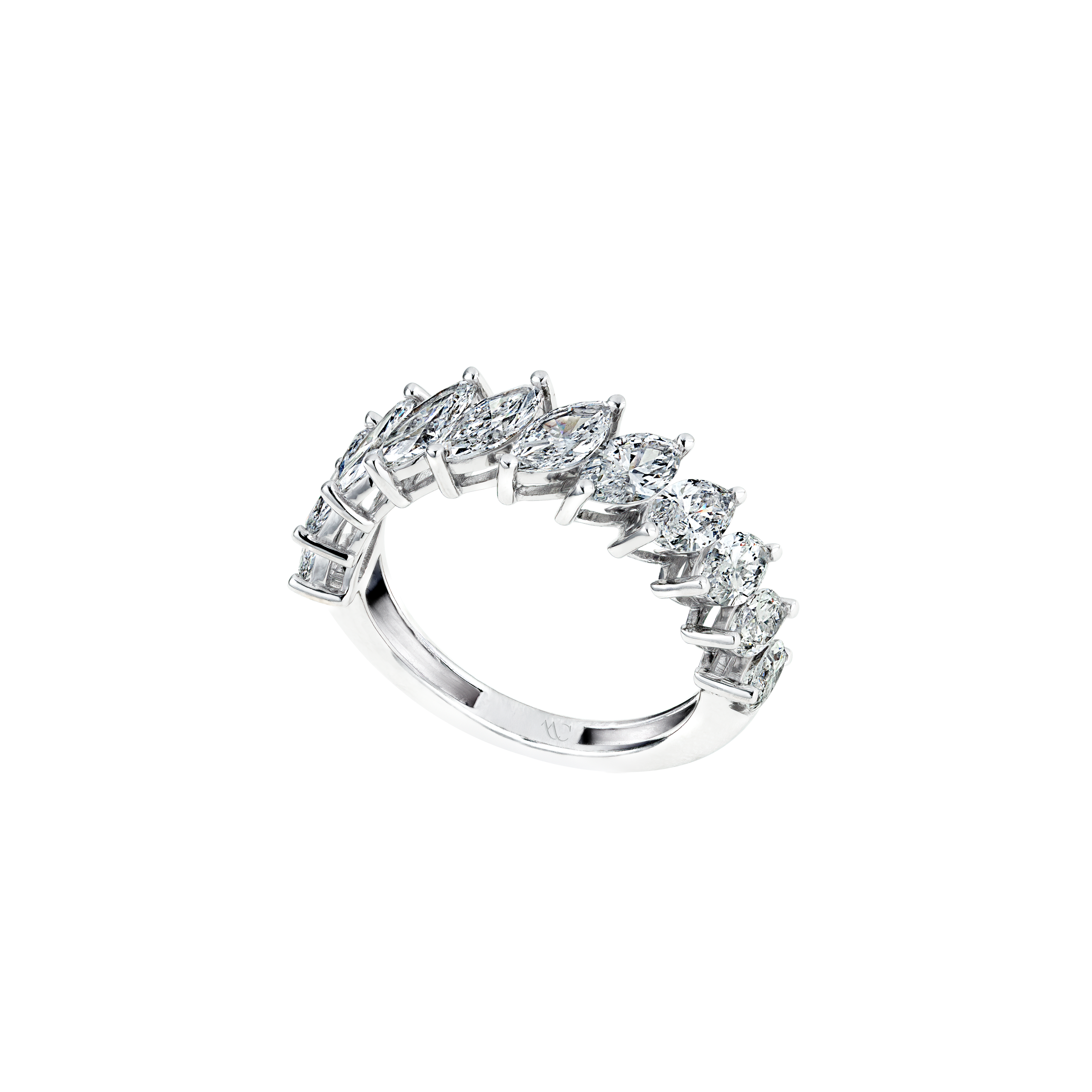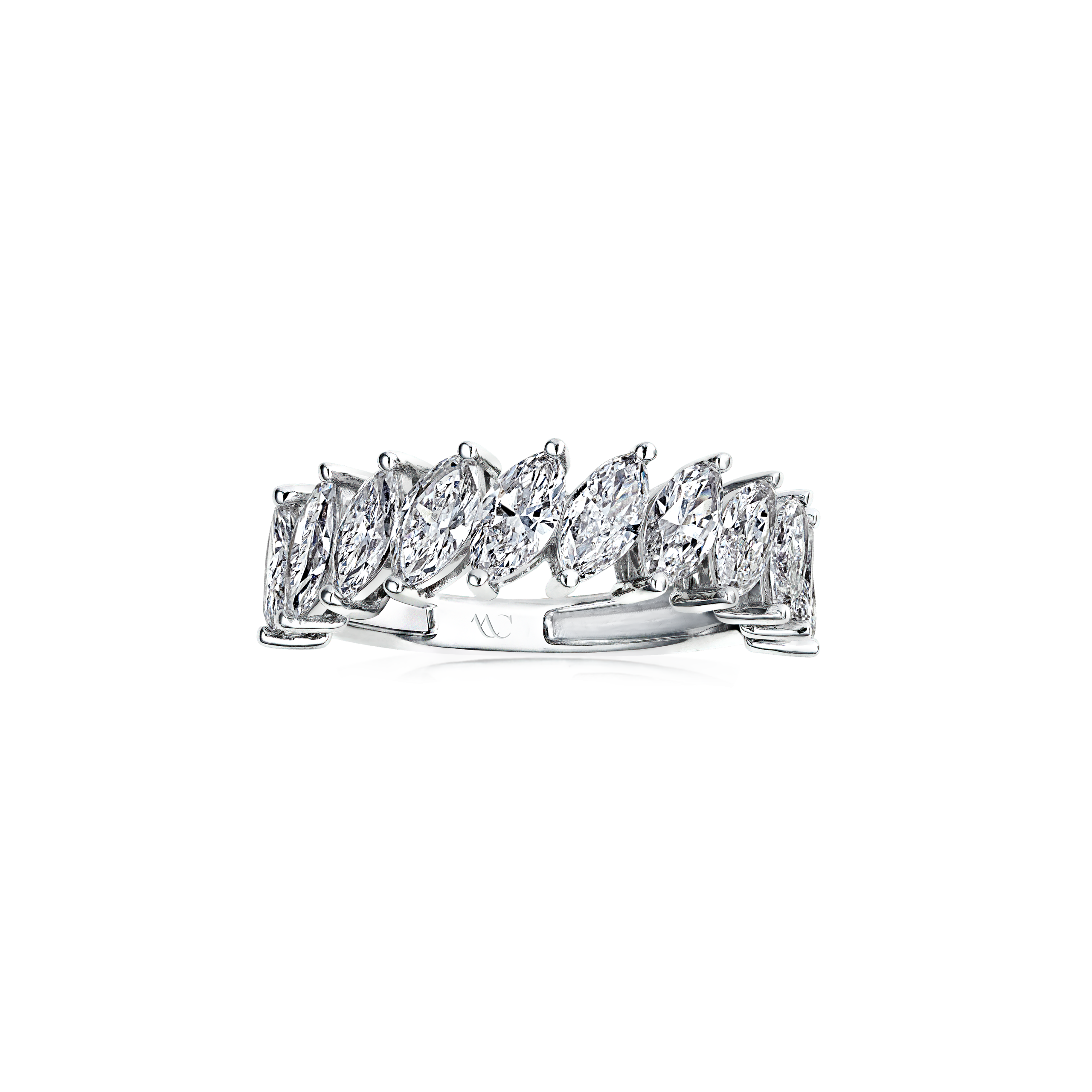 Set in 18k Gold, this half eternity band features a row of Marquise-Cut lab grown diamonds.